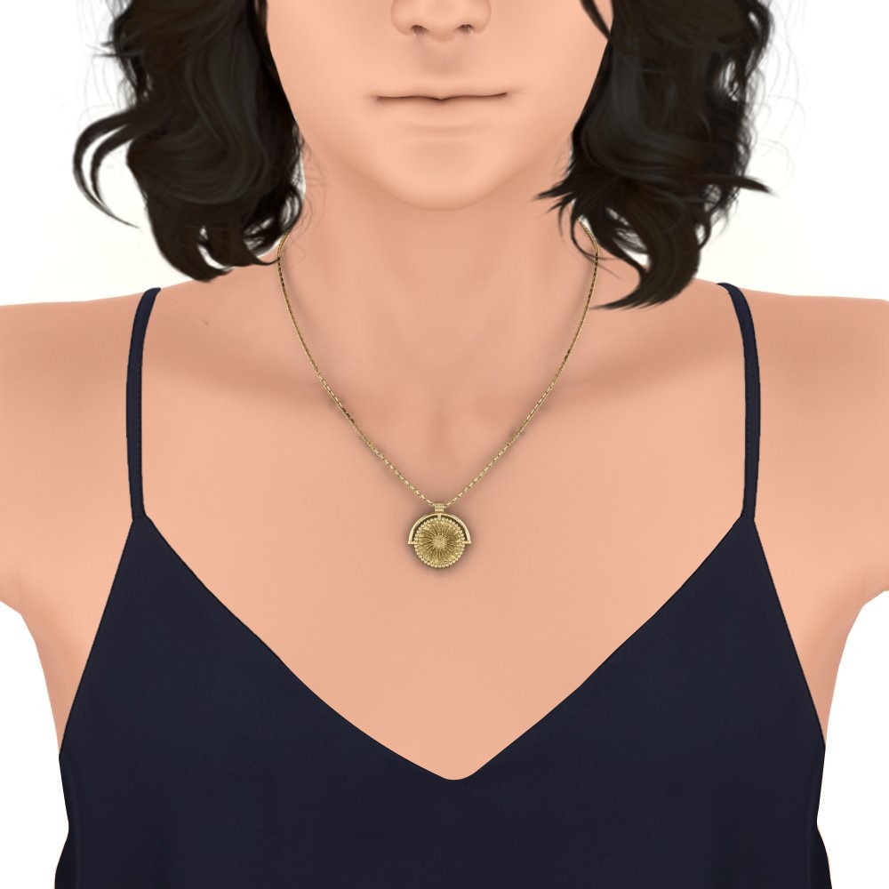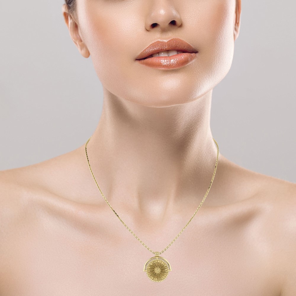 Die Kette des Anhängers ist eine Forzentina-Kette aus 14-karätigem Gelbgold, die in der Länge von 41-45 cm verstellbar ist, um perfekt am Hals jeder Trägerin zu sitzen. Dieses Schmuckstück ist nicht rhodiniert, was die reine Schönheit des Gelbgolds hervorhebt und einen warmen, goldenen Schimmer garantiert, der jedes Outfit veredelt.