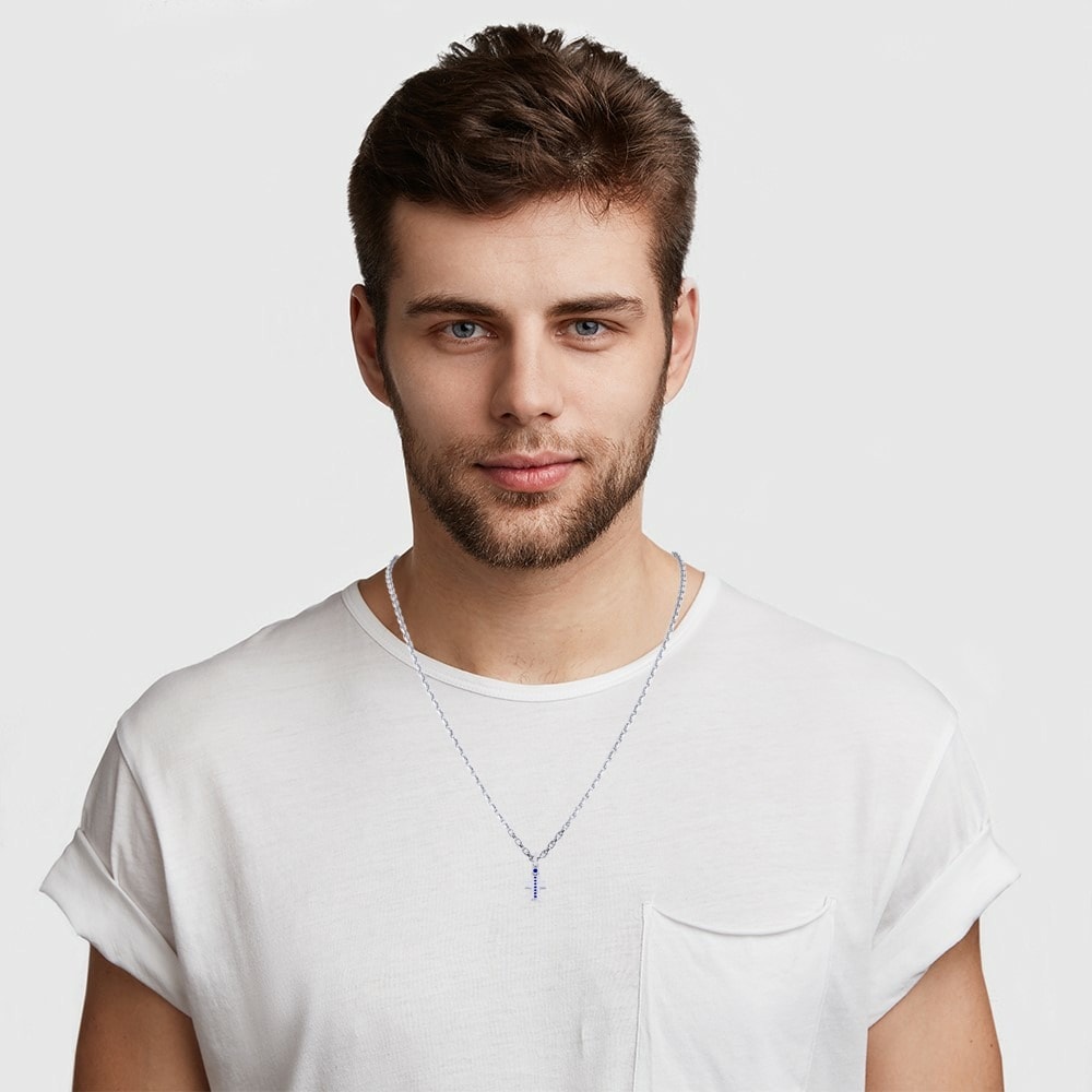 Der Anhänger hängt an einer quadratischen Rolo-Forzentina-Kette, die aus 14-karätigem Gold gefertigt ist. Die Kette hat eine Breite von 50 Mikron und eine Länge von 55 cm, was sie perfekt für den modernen Mann macht. Obwohl die Kette nicht massiv ist, bietet sie dennoch eine hervorragende Haltbarkeit und Komfort.