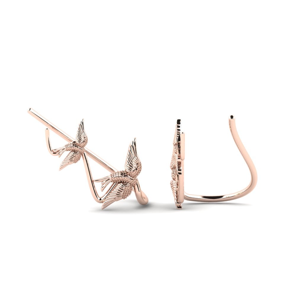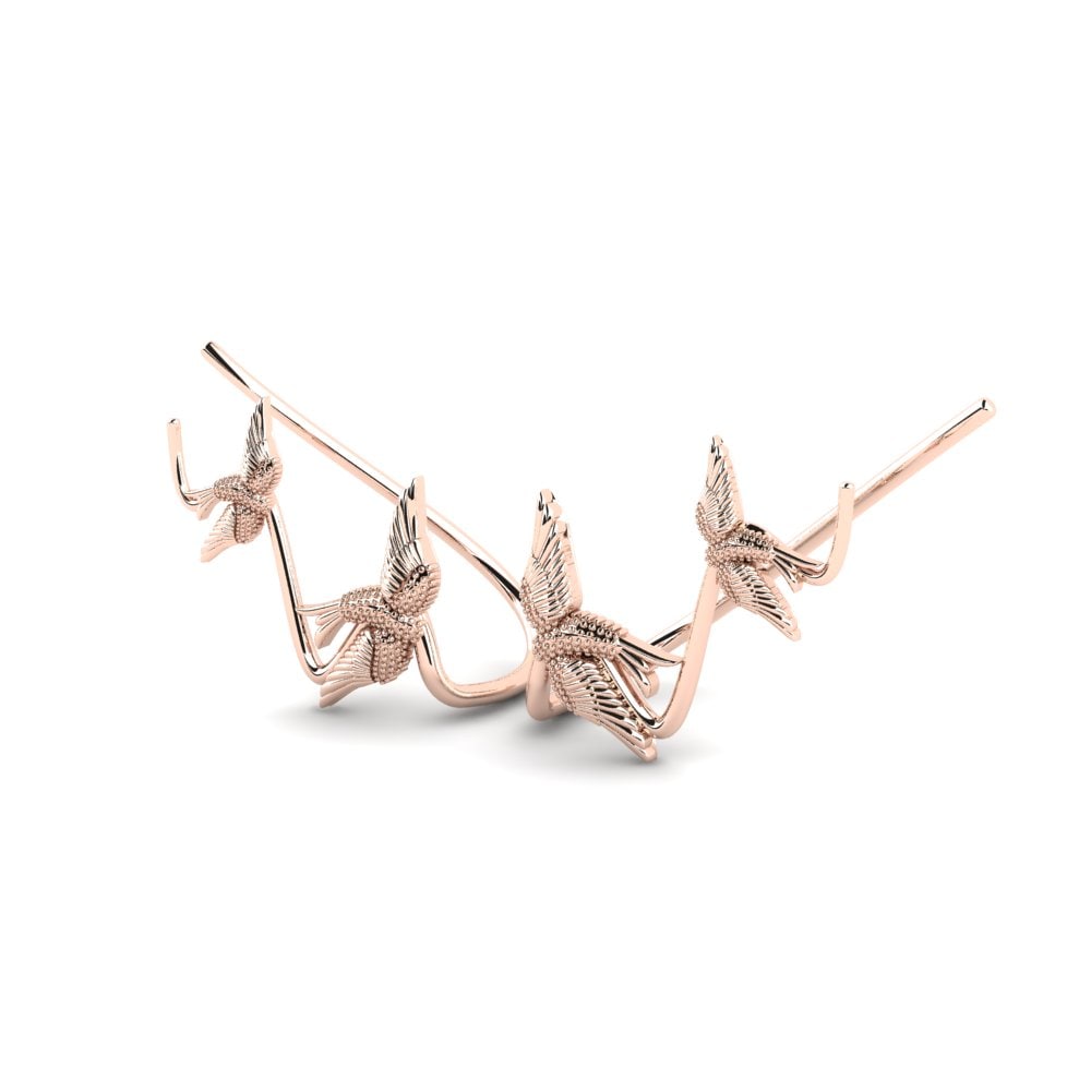 Das Design der Ohrringe ist inspiriert von der Natur und Dynamik der Vogelflugbewegung, was sich in der Form von aufsteigenden Vögeln widerspiegelt, die elegant das Ohr 'hinaufklettern'. Diese Kletterohrringe sind nicht nur ein Schmuckstück, sondern ein Ausdruck von Freiheit und Leichtigkeit. Die detailreiche Ausarbeitung der Federn und die glatte Oberfläche des Goldes bieten ein Spiel aus Textur und Glanz, das bei jeder Bewegung faszinierend funkelt.